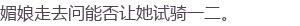 驯兽倌儿原还想替媚娘牵马执鞭,让她只坐在马上溜达下就算了。待见媚娘上马姿势娴熟,这才撒手,退后几步。