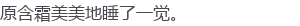 在一通饭饱酒足风卷残云之后,原含霜打着呵欠,坐上电梯到了酒店顶层总统套房,打算补完觉再回学校。