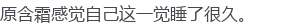 直到这时,原含霜才明白自己在半梦半醒时想要一把抓住并且塞到嘴里的白色能量团子就是楼迦,顿时轻咳两声,心底尴尬:"抱歉,我睡太沉了。"