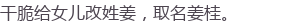 以前小名叫瑰瑰,现在弃了这个字,取名姜桂。