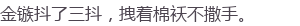 金镞那手抬的,"我保证!我发誓!我回来肯定给您带卤肉,我怕我爸把您给忘了。"