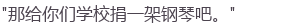 别呀!学校又不缺经费,"再说了,我还会其他的,我可以表演电子琴,我的电子琴弹的也还行。千万别捐,要不然人家就知道了。"
